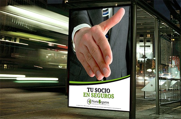 En 2012, la firma gallega Norteseguros, con más de 20 años en el mercado y perteneciente al grupo Espabrok, decide actualizar su estilo de comunicación, lanzando una campaña gráfica y on-line. Junto con David Garea somos los encargados de llevarla a cabo, realizando labores de dirección creativa, estrategias de comunicaciones, redacción de contenidos, aplicaciones en dispositivos urbanos, diseño de material promocional y newsletters para su distribución masiva por correo electrónico.