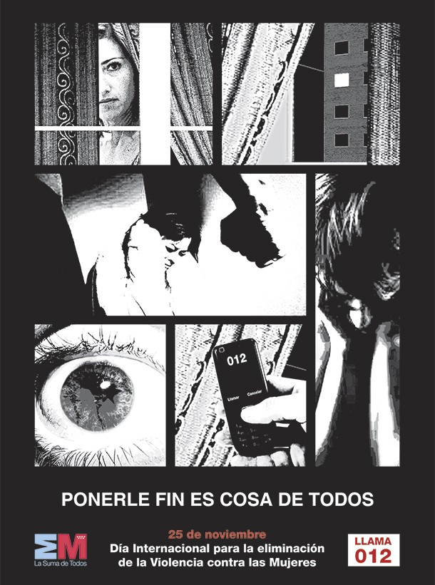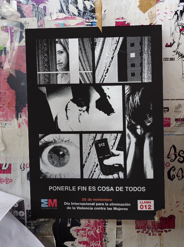 En 2010, la Consejería de Asuntos Sociales de la Comunidad de Madrid, la revista Yo Dona, y el Instituto Europeo de Diseño (IED Madrid) convocan la quinta edición del Concurso de Artes Visuales contra la Violencia de Género, con el fin de sensibilizar, prevenir y denunciar los casos de violencia doméstica. En la categoría de carteles, la obra que elaboramos con María Pena logra situarse entre los 10 finalistas, superando a más de dos centenares de propuestas. Nuestro cartel forma parte de una exposición itinerante a lo largo de todo el territorio español.
